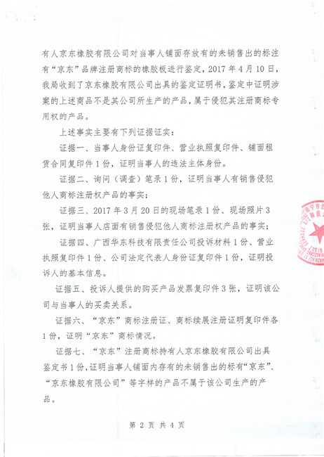 截止到2018年11月份,廣西南寧西鄉塘區工商行政管理和質量技術監督局對假冒我公司商標侵權行為進行行政處罰:崔建強[西工質處字(2017)1065號] 10000元;張騰遠[西工商質監處字(2018)1312號] 75500元。全部上繳國庫。并對這兩起案件我公司也進行了司法賠償判決。